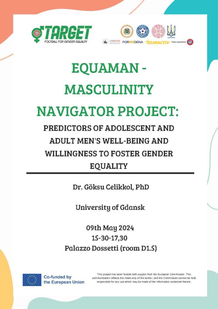 EQUAMAN: Masculinity navigator project. Predictors of adolescent and adult men’s wellbeing and willingness to foster gender equality – 9th May 2024