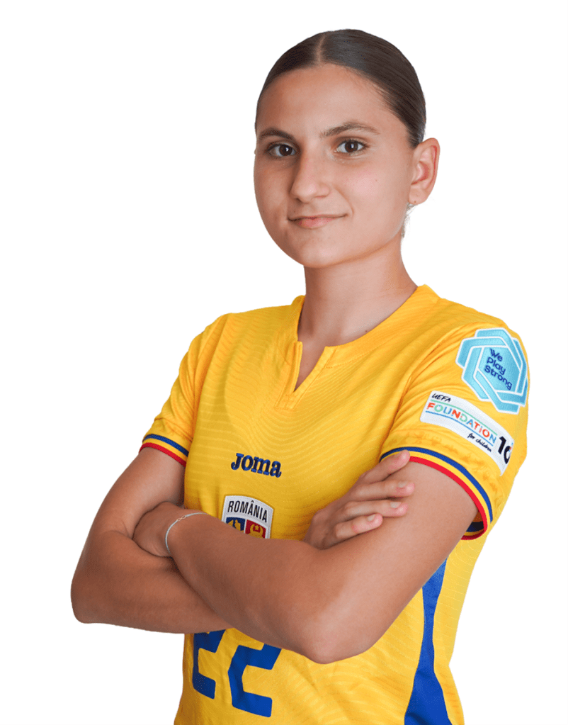 She is one of the most promising players in Romania. At just 19 years old, she has already made her debut for the national football team, managing to provide an assist in her first match. She already has two Romanian championship titles under her belt with Farul Constanța, and in the 2025/2026 season she was named the best player in the Romanian first league.